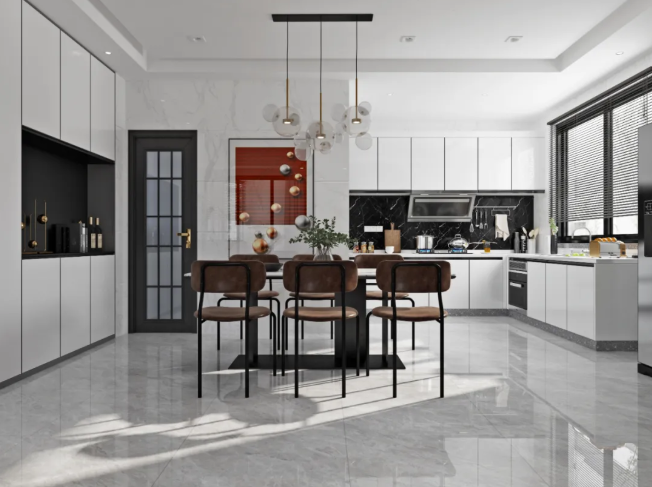 貝樂(lè)多灰裝飾下的開(kāi)放式廚房,簡(jiǎn)潔大氣而又不失優(yōu)雅。一日三餐四季,為心愛(ài)的人做一頓飯,幸福感爆棚。
